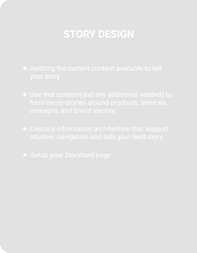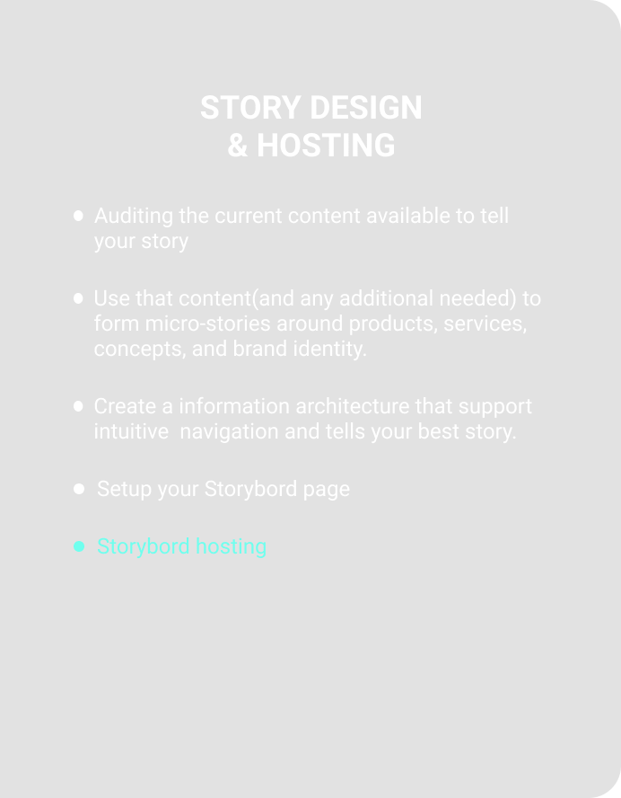 Let us design and set up a Storybord page that tells your customers an engaging and intuitive Story about your products, services, and brand.